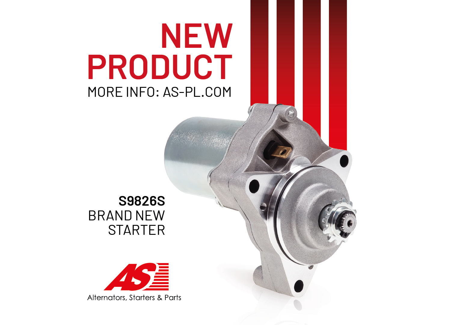 Another new starter has enlarged the AS-PL offer. The starter has an index number S9826S and is the product of the AS brand. The starter belongs to the Standard line – the line of products that merge the quality at a reasonable price. The product can be used in many ATV models, commonly known as quads, such as the Redcat KMX-110, Baja Wilderness 90, and Jetmoto ATV 125.