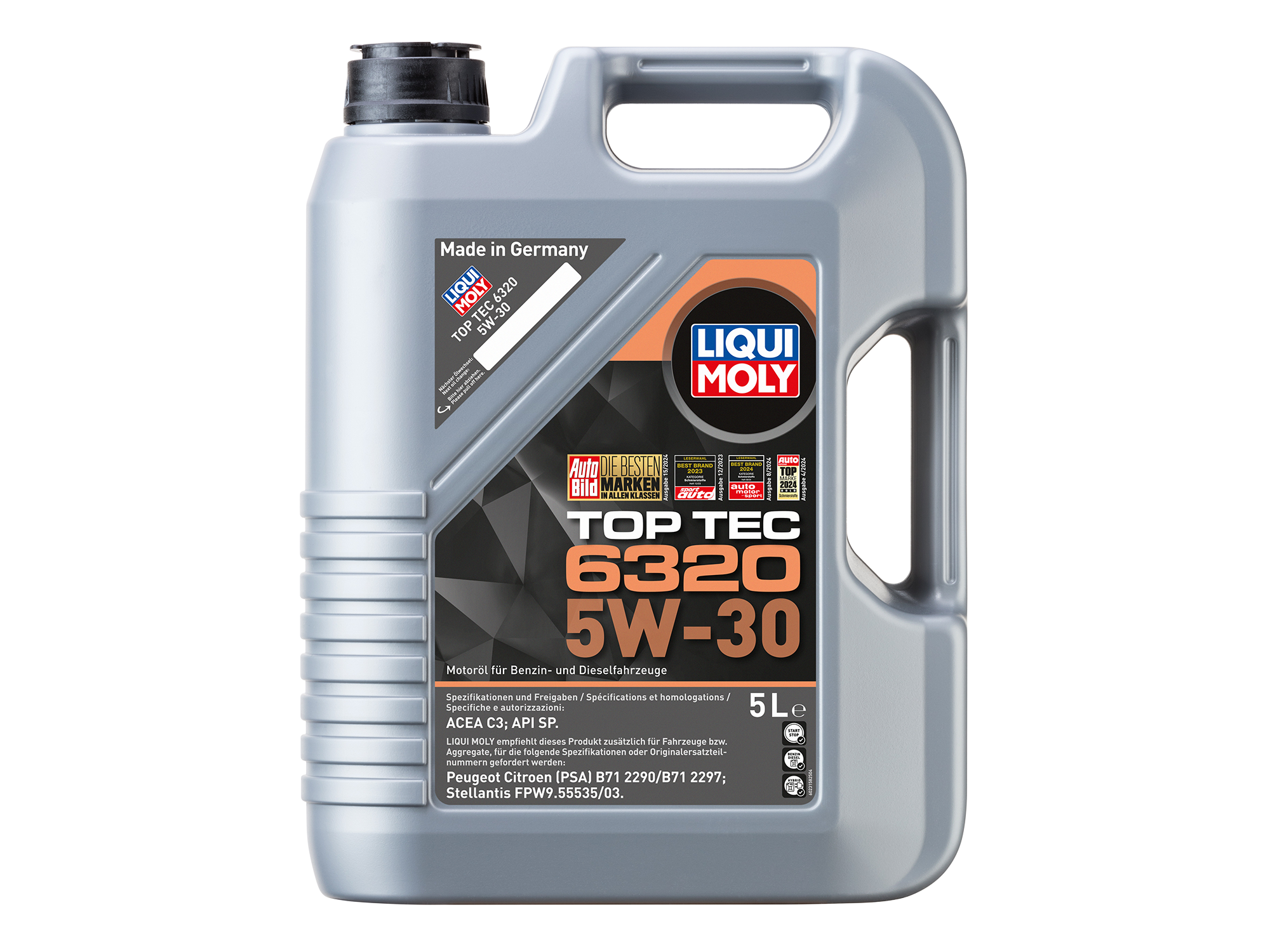 Top Tec 6320 5W-30 is primarily developed for Citroën, DS, Fiat, Jeep, Opel, Peugeot and Toyota petrol and diesel vehicles fitted with PSA engines.