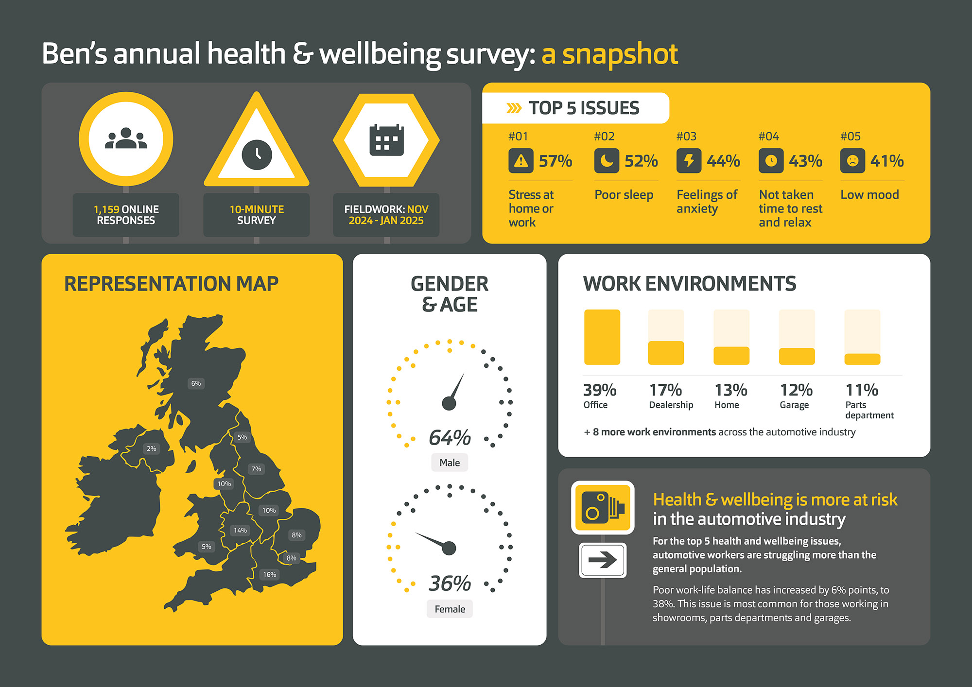 Automotive industry charity, Ben, has launched this year’s annual health and wellbeing report revealing results from its most recent survey, which polled over 1,000 automotive workers.