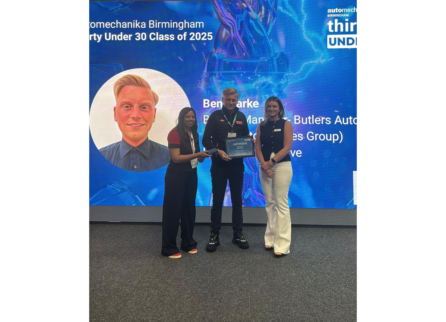 Ben Clarke, Branch Manager at Butlers Automotive, part of the Autosupplies Group, has been recognised as one of the rising stars of the industry, having been named in the Automechanika Birmingham’s Thirty Under 30 awards.